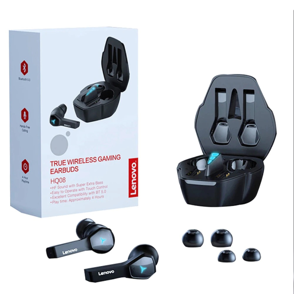 The Lenovo HQ08 is a TWS Gaming Dual Earbuds. It is featured with Bluetooth 5.0 connectivity. It has a 400mAh large-capacity charging case. It is made of skin-friendly materials. It is very comfortable and soft to wear. It can deliver 360° stereo surround sound, and bring an immersive experience. As the earbuds are IPX5 splash-proof, there is no fear of rain and sweat.