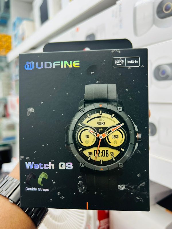 The Udfine Watch GS is a smartwatch with a 1.38-inch HD display, Bluetooth calling, Alexa voice assistant, GPS, and 50M water resistance. It also has double straps, making it perfect for both men and women.