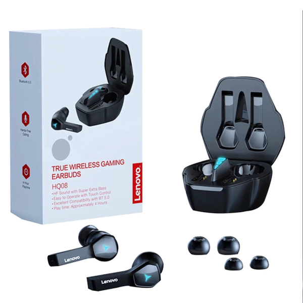 The Lenovo HQ08 is a TWS Gaming Dual Earbuds. It is featured with Bluetooth 5.0 connectivity. It has a 400mAh large-capacity charging case. It is made of skin-friendly materials. It is very comfortable and soft to wear. It can deliver 360° stereo surround sound, and bring an immersive experience. As the earbuds are IPX5 splash-proof, there is no fear of rain and sweat.